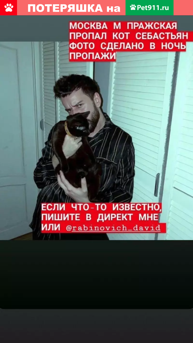 Кот. Около года. Темно каштановый окрас, практически черный. С коричневым ошейником с заклепками серебристыми. Кастрированный. Есть пару светлых пучков шерсти. Гладкошерстный.