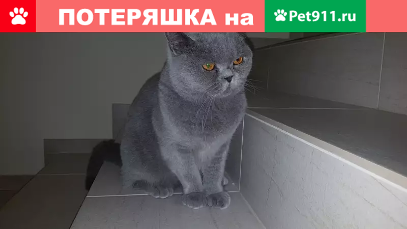 Домашняя кошка, 5 лет. Порода - Британская короткошерстная. Окрас – голубой.