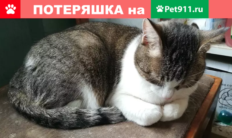 Беспородный, взрослый (5 лет), серый с белой грудкой и лапками, стерилизованный, толстый, глаза зеленоватые. 21 апреля около 19 вечера выбежал в неплотно закрытую дверь на ул. Малая Пироговская д. 23, подъезд 4