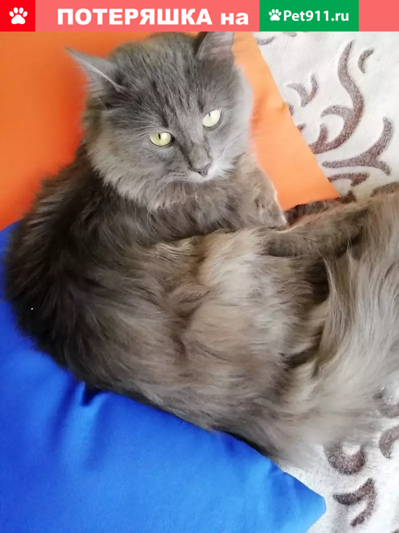Пропал пушистый серый кот с ошейником на Сормовской 10к2