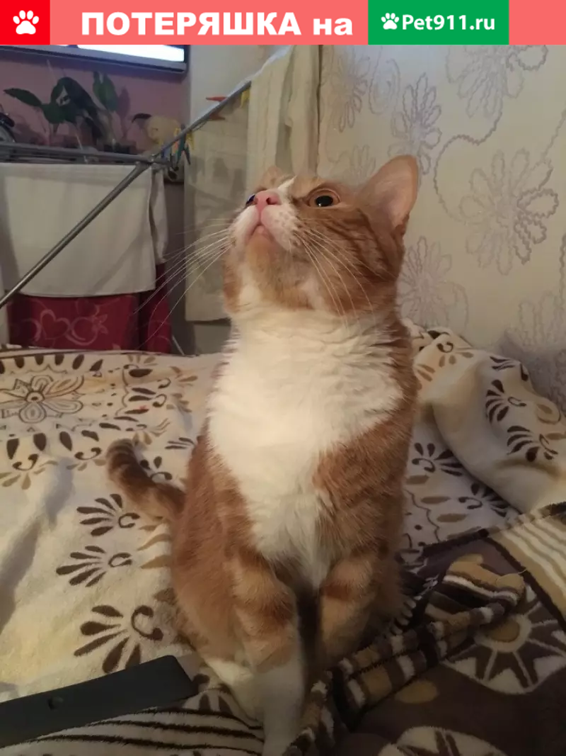 Выпал из окна, многоэтажного дома, по камере было видно как кот убежал. Окрас рыжий с белым, откликается на кличку "Макс", дружелюбный и ласковый. Коту 2 года.