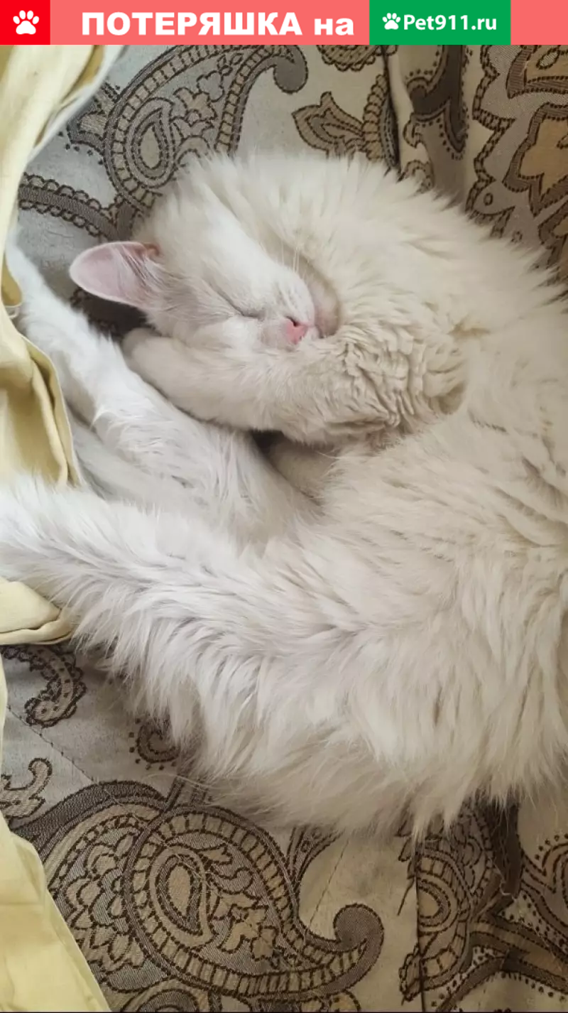 Здравствуйте, мы нашли белого кота, Москва, район Солнцево. Возможно, это не ваш кот, я не знаю. Пришел к нашему подъезду около 2 июня 2019, молодой кот, белый без пятен, не кастрирован, упитанный, чистый. Шерсть густая. Глаза разного цвета - голубой и желтый. Никому в руки не идет, живет в подвале многоэтажки.Если что мое объявление есть на этом сайте в разделе Москва/найдена/кошка. Номер объявления и номер моего тел. в данном комментарии не дает указывать система на сайте. Пишите на эл.почту мне post.seven@mail.ru.