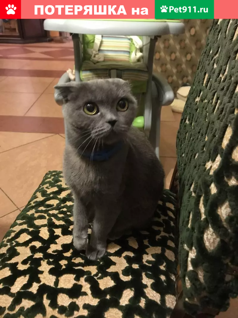 09.06 вечером , д. Юрлово Солнечногорского р-на ул.Борова 7, убежала шотландская вислоухая серая кошка! Кошка домашняя, на улице не гуляет, приехала в гости на дачу, поэтому может забиться в самый дальний угол на Вашем участке. Пожалуйста, осмотрите свои участки и укромные уголки на нем. Помогите вернуться кошке домой! Приметы: кличка – Лилу, шотландская вислоухая серая, выстрижен бочок, была без ошейника. Если вы видели кошку или знаете, где она, пожалуйста, срочно сообщите! Вознаграждение гарантируется!!!! +79250059772/ +79267578587