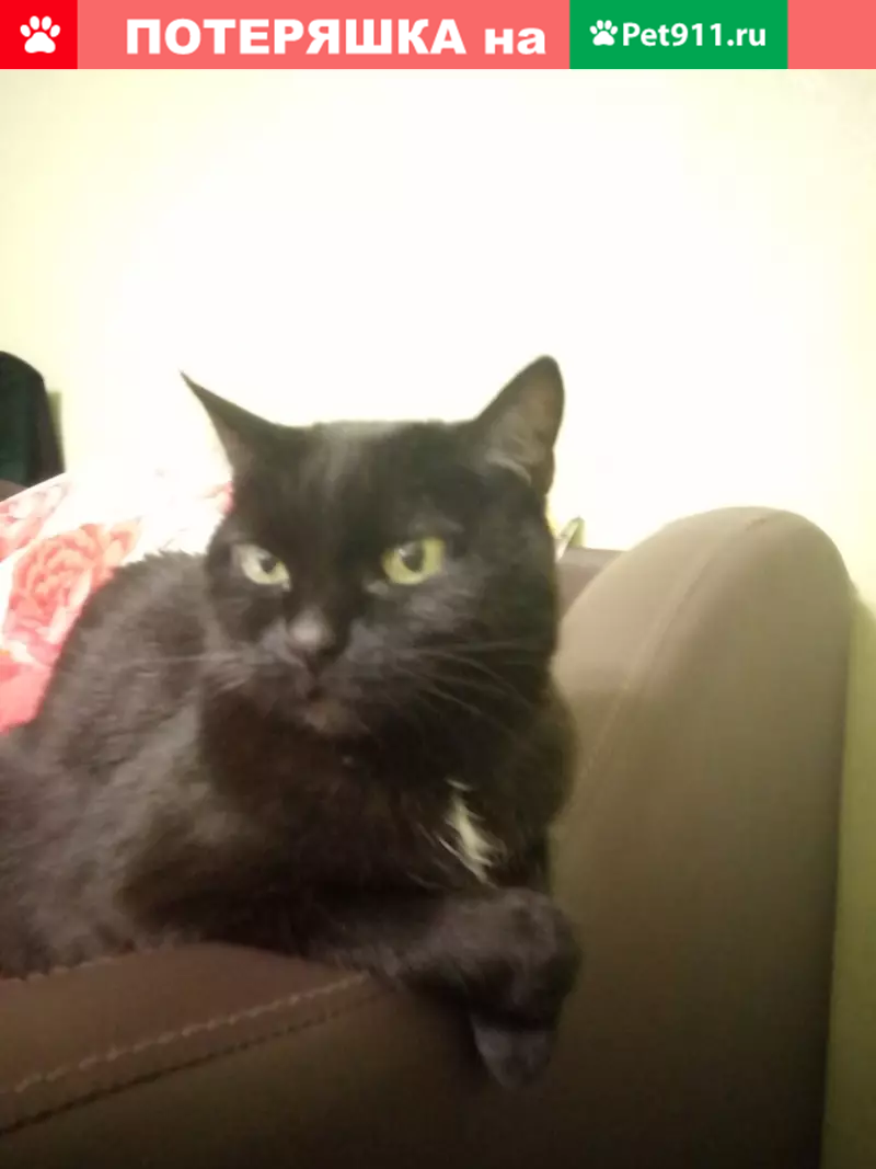 Беспородная кошка (самка), клички не имеет. На груди маленькое бело пятнышко, внизу живота большое белое треугольное пятно. Кошке 13 лет, имеет седые волоски, в правом глазу коричневая крапинка. Скорее всего ее кто-то подобрал. Пожалуйста, помогите найти друга детства! Уже не нахожу места себе. +79032007111, Екатерина