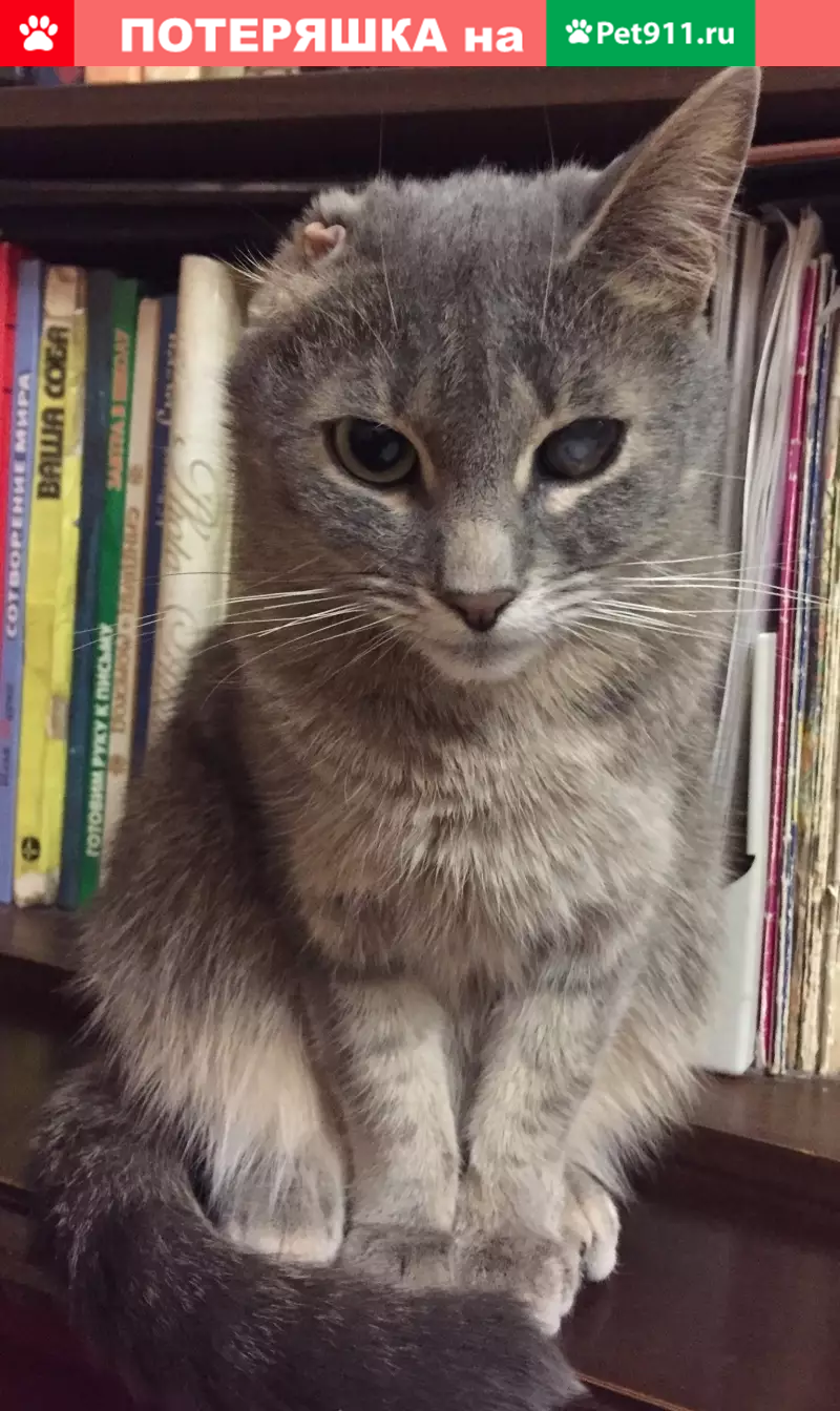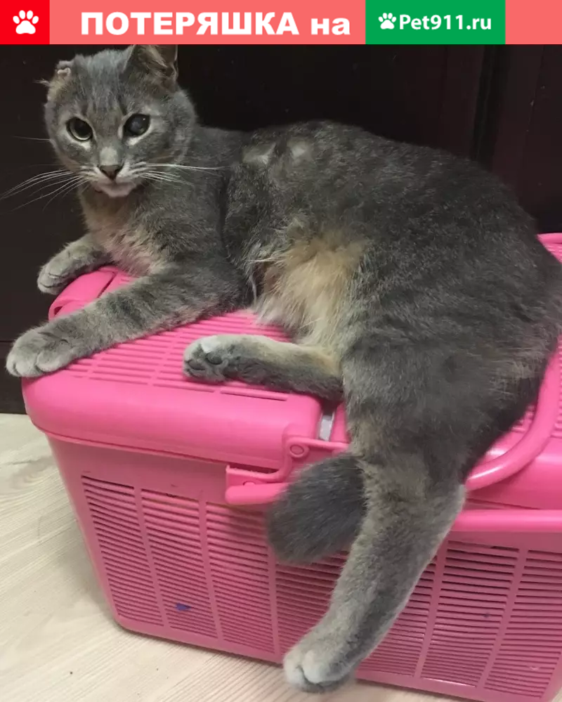 Кошка серого цвета, отсутствует ухо!