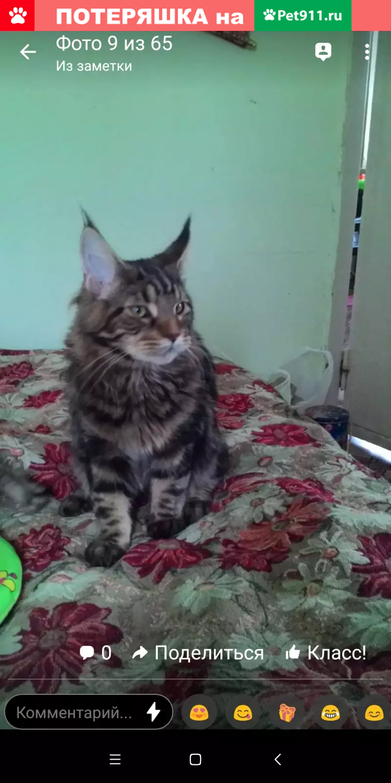 Мейн-кун,кот,возраст 4года,кастрирован,окрас-черный мрамор.Предположительно убежал в открытую дверь 13.06. Нашедшему вознаграждение 5000 рублей
