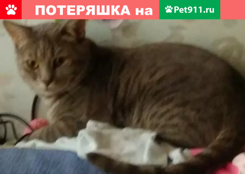 Кот серый с большими пятнами на спине и полосатый хвост метис (бенгал+сибирская). Пропал 7-8 июня выпал с пятого этажа с балкона. Пуглив любит прятаться.Откликается на кличку ТИМА.