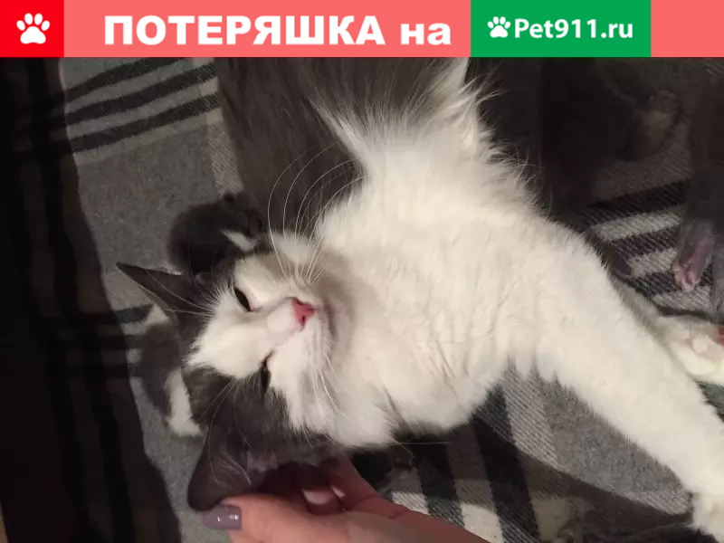 Кошка домашняя, окрас - серый с белым. На мордочке окрас «косыночкой». Тонкая красивая мордочка. Кличка - Пуша. У кошки течка, поэтому сломала решетку на окне и убежала из дома. Пропала в Москве, район Куркино, Воротынская улица...Вознаграждение! Кошка не царапается, не кусается.