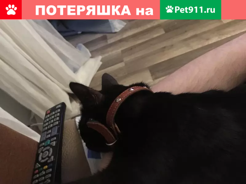 Кот. Около года. Темно каштановый окрас, практически черный. С коричневым ошейником с заклепками серебристыми. Кастрированный. Есть пару светлых пучков шерсти. Гладкошерстный. Чипирован. Привит. Звоните по номеру 89169883243. В районе метро Пражская. Улица Красного Маяка.