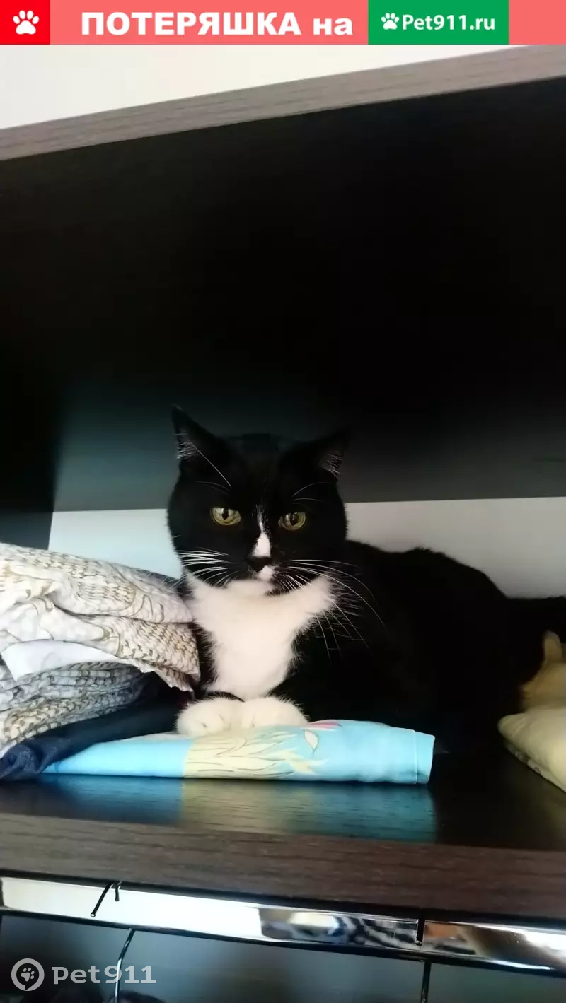 Потерялся Кот вечером возможно выпал с окна т.к окно было открыто когда меня не было 04.09.2019 черный белая грудь белые лапки кличка барсик 8 лет убедительная просьба ,если кто то видел или нашел кота позвонить по номеру 89637611405 дополнительный номер +7 909 972-64-53