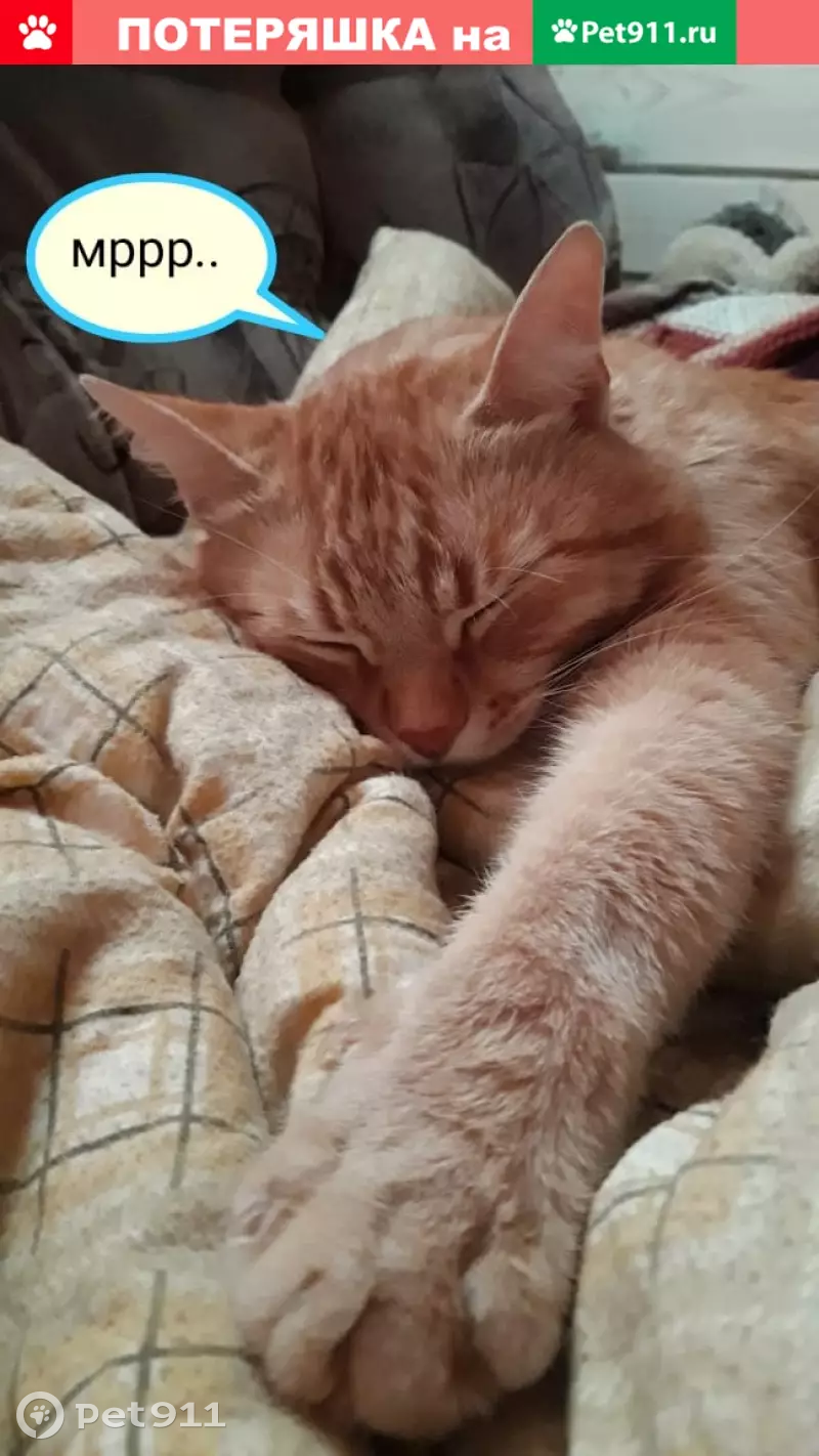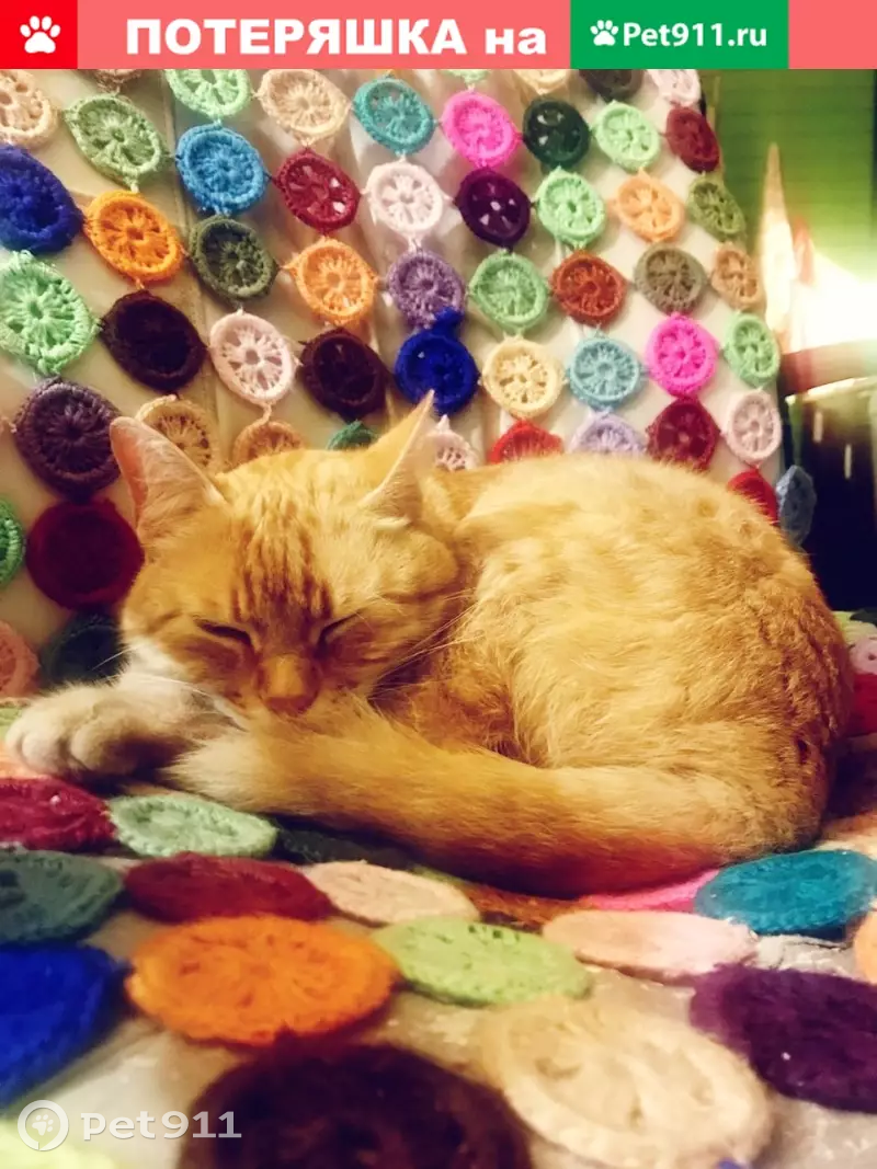 Выбежал из квартиры кот, в ночь на 21 октября 2019г. Окрас рыжий с белыми полосами, кличка мурзик. Кастрированный, домашний, упитанный, добрый, умный, игривый, ухоженный. Очень по нему скучаем. Если кто-нибудь знает о местоположении кота, будем благодарны за вознаграждение.