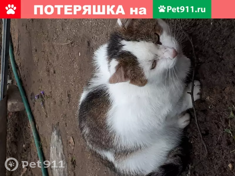 Белый с рыже-серыми пятнами, зеленые глаза. Коту 5 лет. Очень нам дорог.