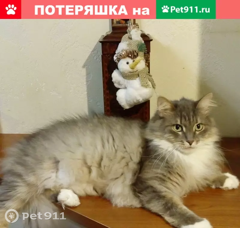 Серо-дымчатый, пушистый, полосатая спина, белая грудка и белые как тапочки на 4 лапах, над глазами буква М, он очень пугливый и голодный уже 8 дней!!! Зовут Вася. Пропал 10 мая, выпал из окна дома по улице Кухмистерова дом 6. ПОМОГИТЕ в поиске пожалуйста!!! Нашедшему гарантировано вознаграждение! тел 8916954792 я есть в WhatsApp