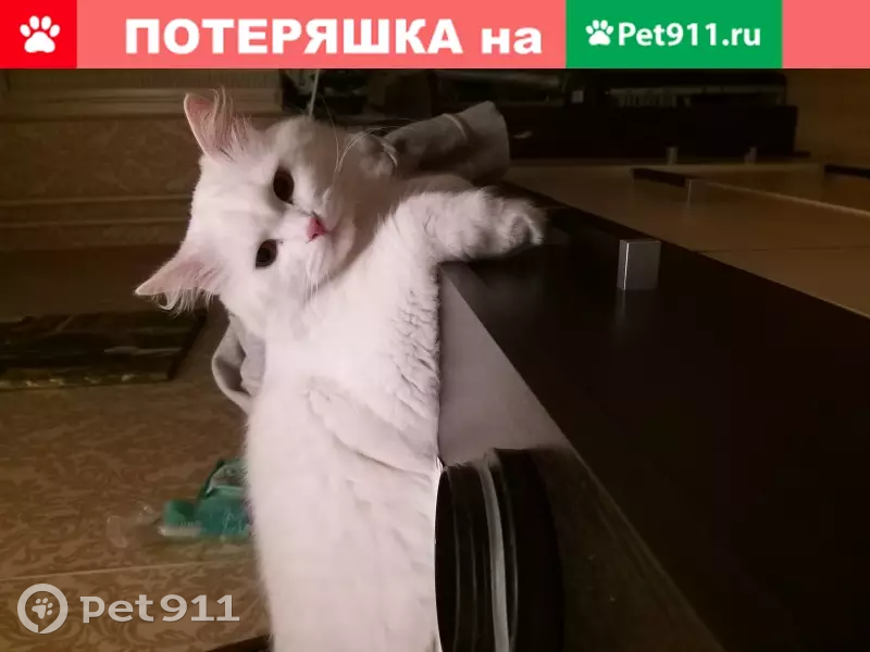 Кот по кличке Белый,кастрирован.Окрас белый,глаза янтарные,пушистый.Чужих людей боится.Крупный(вес примерно около 7кг).27 мая выпал из окна 4го этажа около 9часов вечера по району Текстильщики,ул грайвороново,квартал 90а,корпус 8.