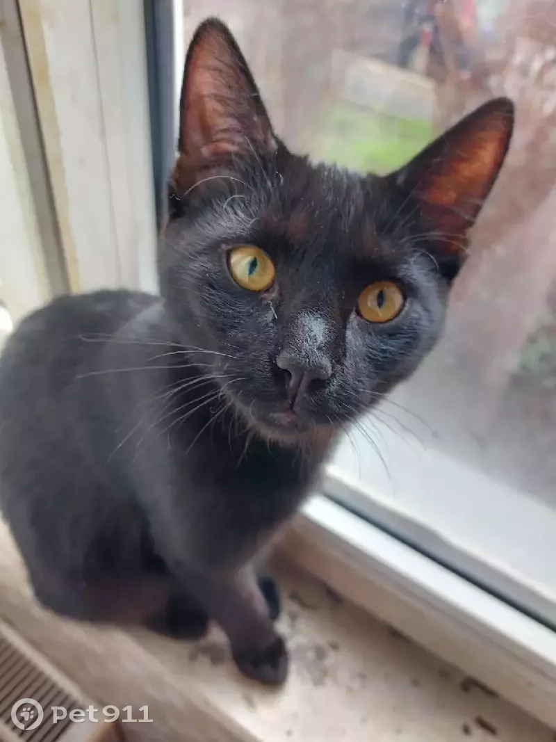 Кота зовут Рэся (Рэкс),7 месяцев, мальчик ,полностью черный, жёлтые глаза, длинный хвост, длинные лапы и сам довольно длинный, очень ласковый ,но улицы боится,собак .
