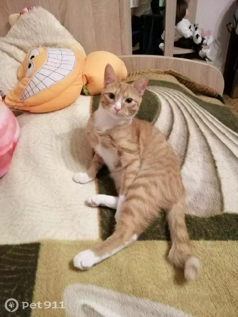 Потерялся кот. Выпрыгнул из окна. Полосатый рыжий, с белой грудкой и белыми носочками на лапках. Возраст 1год, но он мелкого размера. Характерная особенность: кончик хвоста сломан в двух местах. Откликается на кличку Том, Томас.