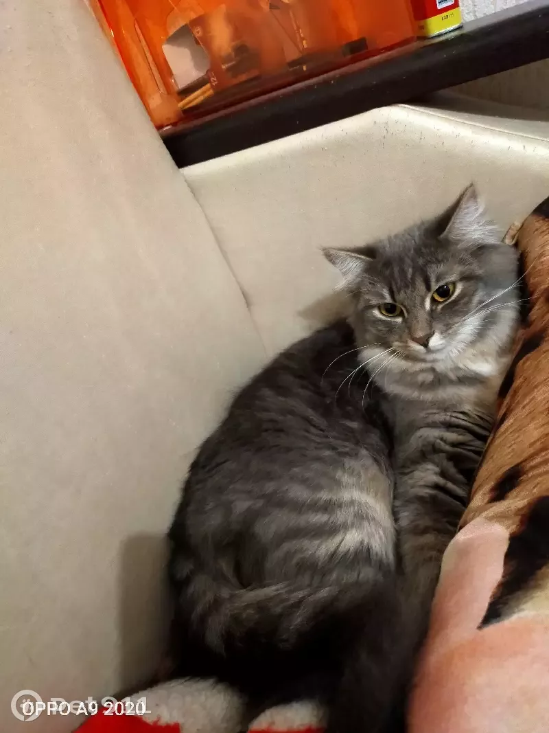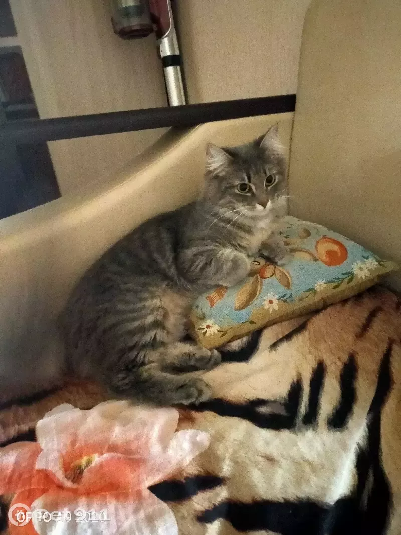 Пропала кошка, выпала с балкона 5 этаж, возможно ранена. Не крупная ей год, пушистала серая с белым,в полоску,глаза жёлтые,пушистый хвост. Возможно пугливая,но ласковая. Может откликаться ка кличку Прося.