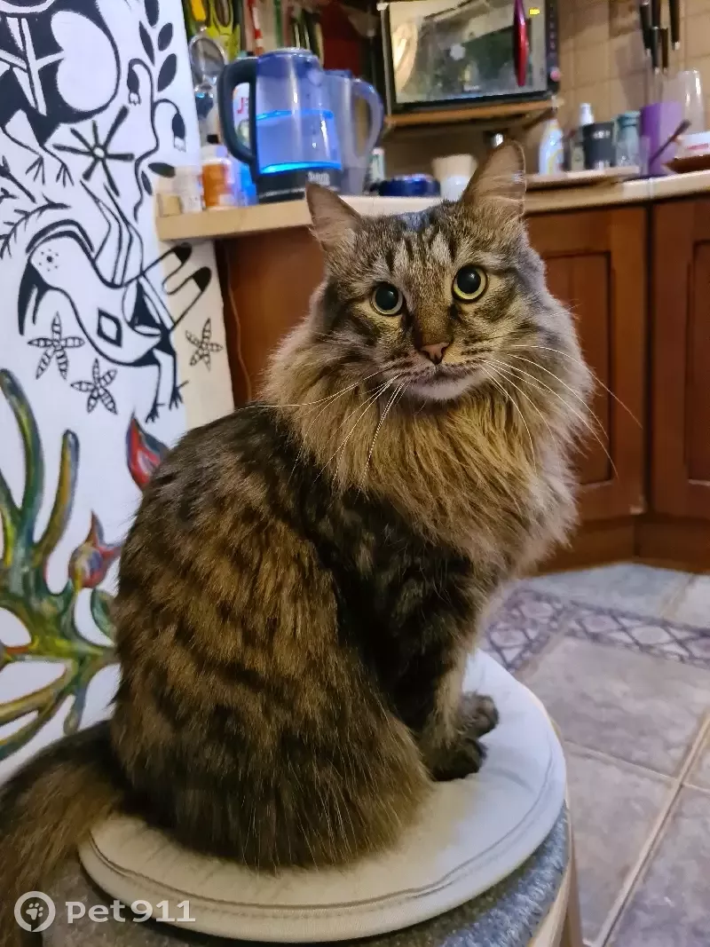 Пропал кот! Кличка Антик, окрас коричневый в полоску, есть "грива" вокруг шеи, крупный, длинношерстный, пушистый, похож на сибирского. Не хватает передних зубов. Очень ласковый, контактный, но трусоват. Кастрирован. Преположительно ночью выпал из окна. За вознаграждение !
