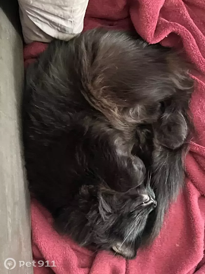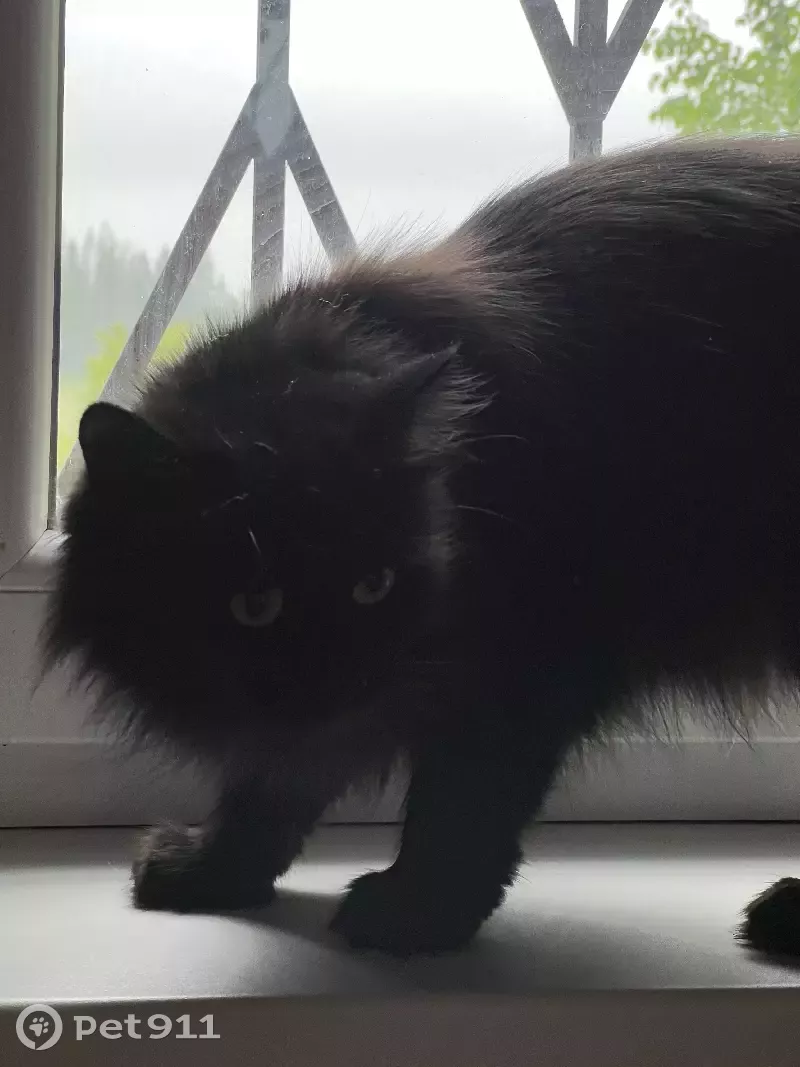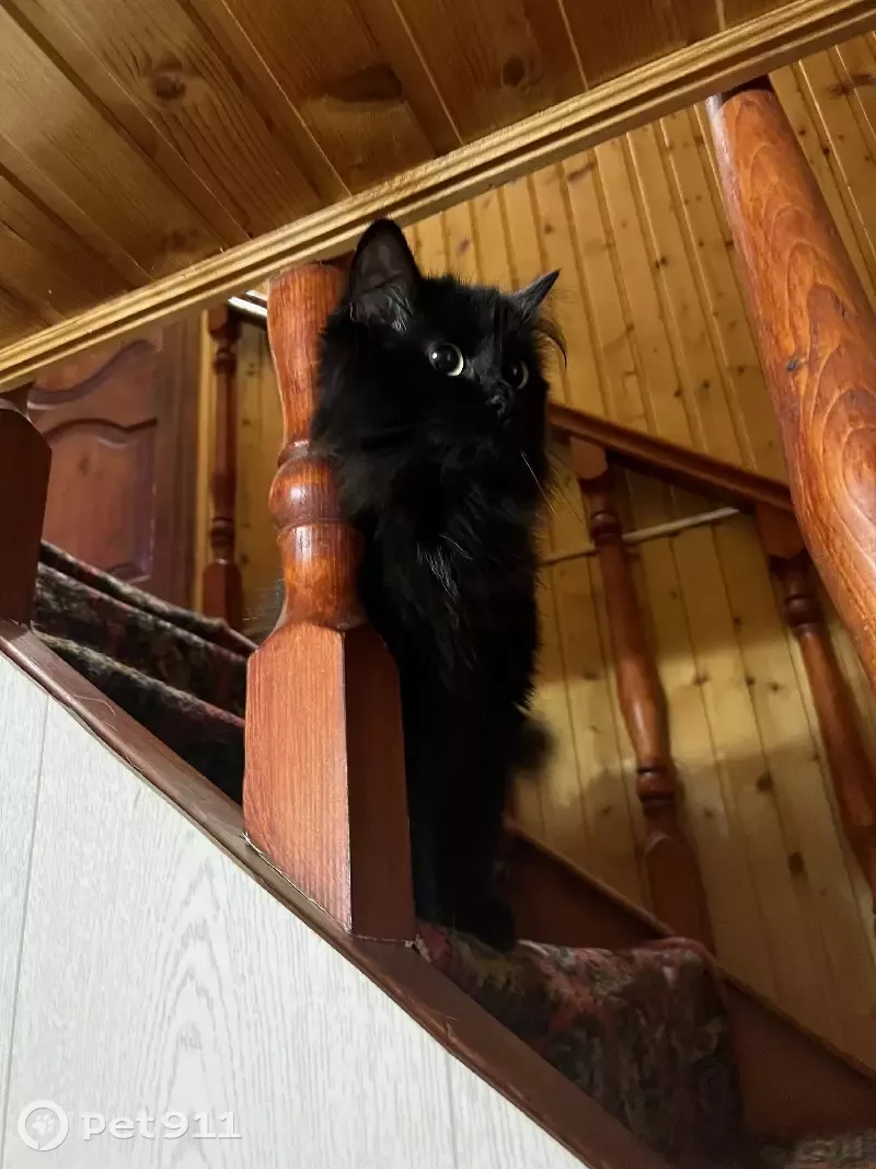 Девочка, зовут Котико, окрас черный с беленькой грудкой, очень ласковая, судя по всему спрыгнула с балкона второго этажа пока мы не видели, порода невская маскарадная