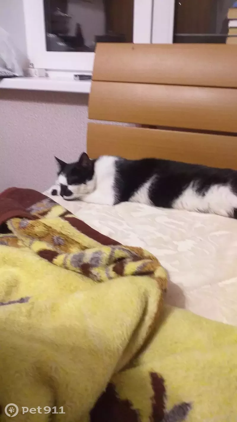 Пропал кот Василий. Окрас-черно-белый,с черной шапочкой и белым пузиком.Мальчик ласковый,общительный. Выпал из окна,может иметь травмы. Особые приметы- подушечки на одной ножке розовые,на всех остальных-черные.