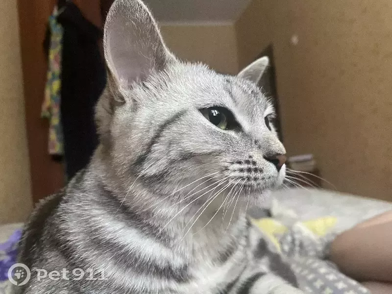 Кошка, окрас серая с чёрными полосками. На животике беленькая. Порода Бенгал. Возраст 8 месяцев. Домашняя, боится шума машин. Живем на втором этаже,балкон не застеклен. Возможно выбежала как муж выходил курить! Однажды выпрыгивала и мы её сразу забрали! Только этот вариант возможен!