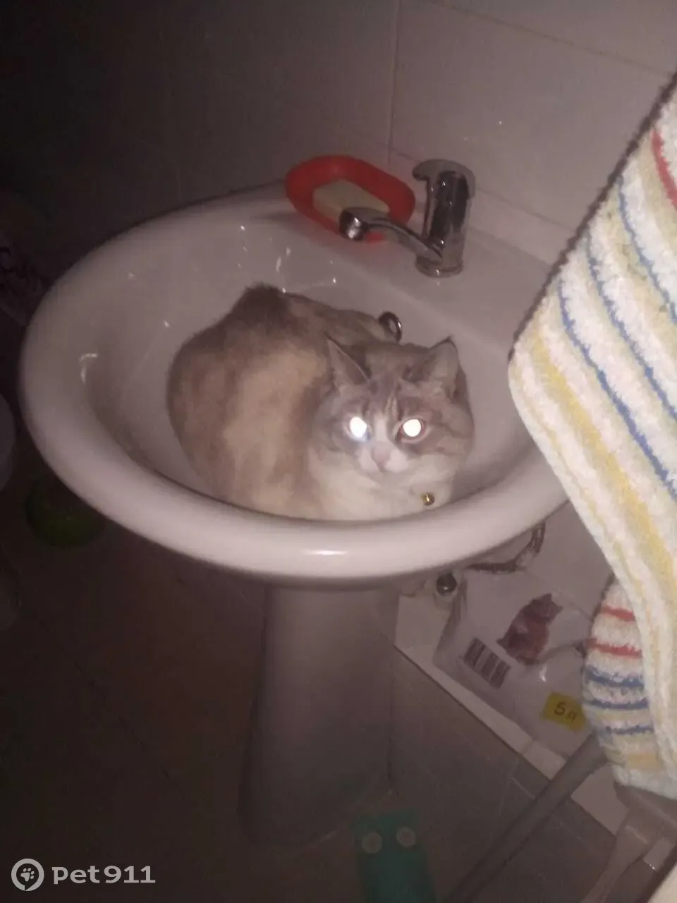 Потерялась кошка, стерилизована. Светло серого цвета. Помесь бирманская/сиамская. На ней был голубовато-зеленый ошейник. Потерялась в районе бескудниковского бульвара. Добрая, ласковая.