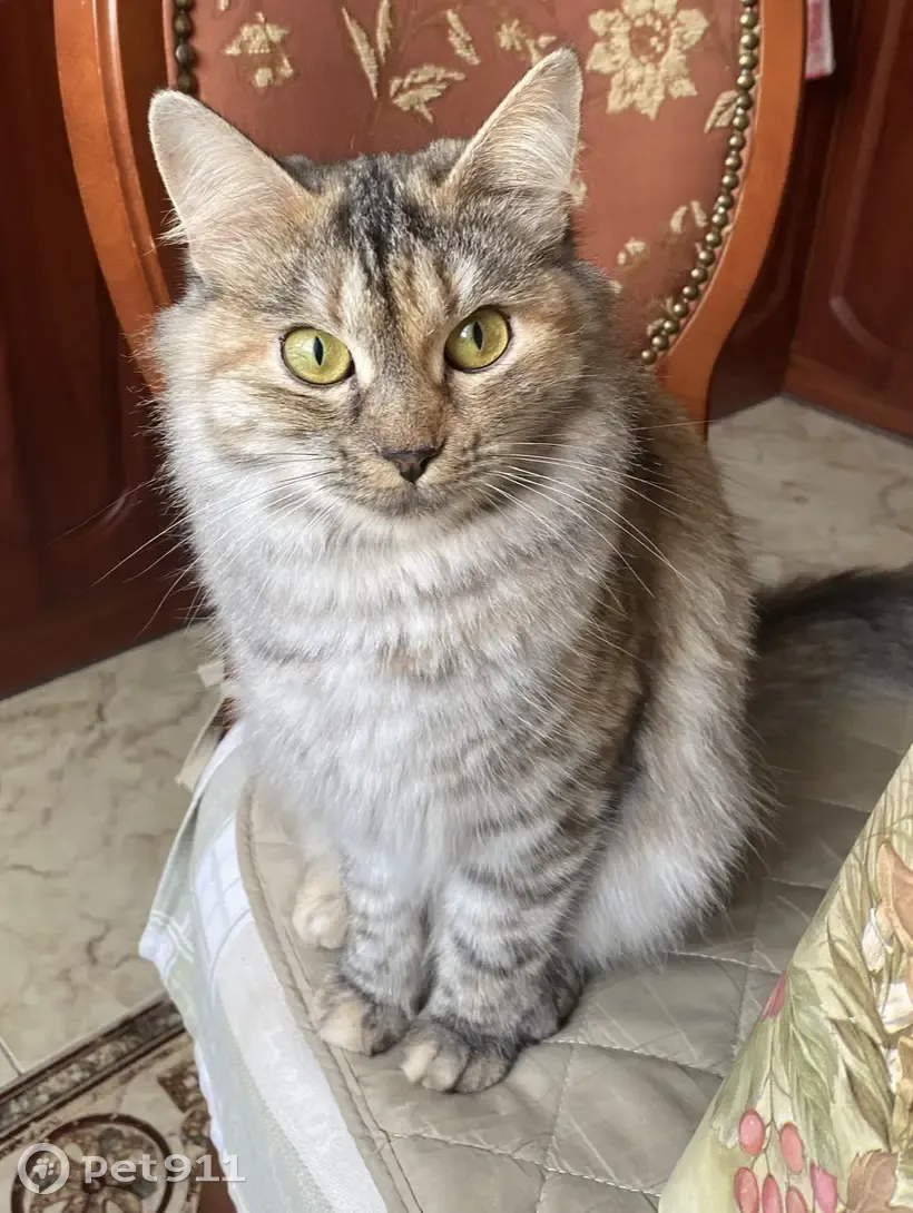 Кошка, 2,5 года. Окрас: разноцветная, но ближе к серому, полосатая как рыбка, пушистая, большие уши, длинный хвост. Скорее всего, она выбежала из квартиры, когда мы выходили из нее.