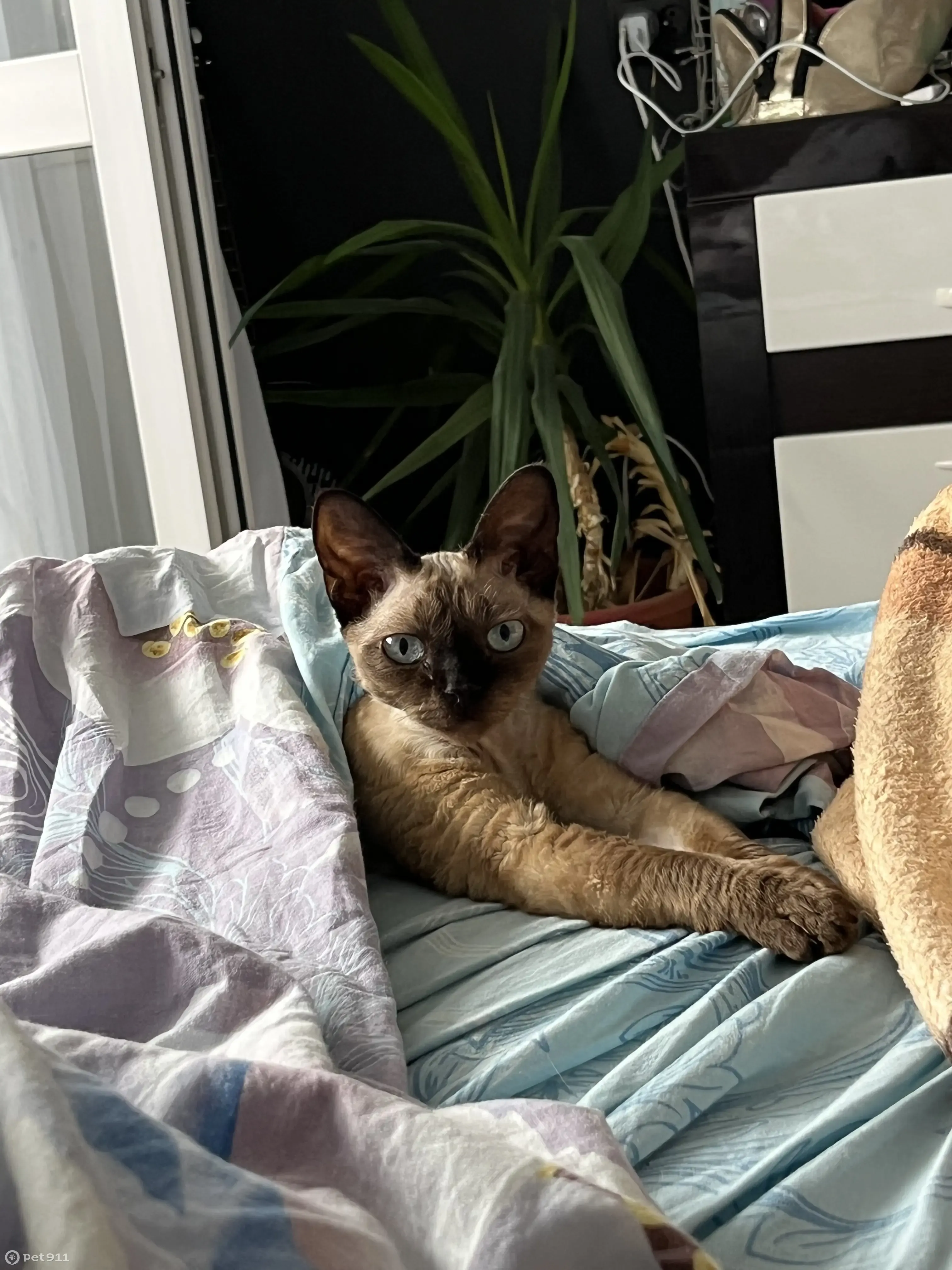 Особые приметы: шерсть короткая и вьющиеся, голубые глаза