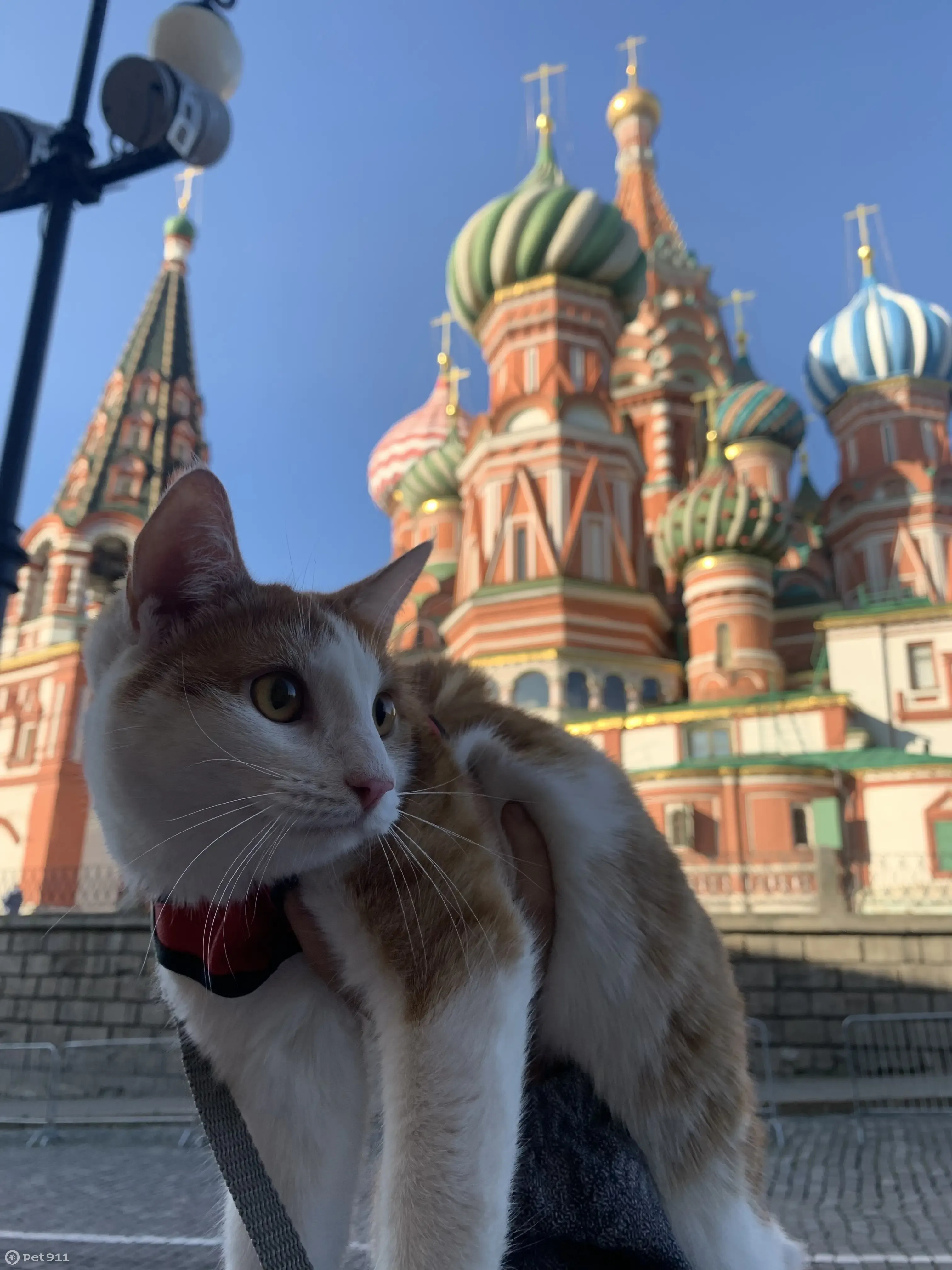 Рыже-белая кошка, девочка, 2 года, 4 кг. Пропала, пока шли через Зарядье, вырвала голову из шлейки и убежала. Кошка домашняя, сильно испугалась.