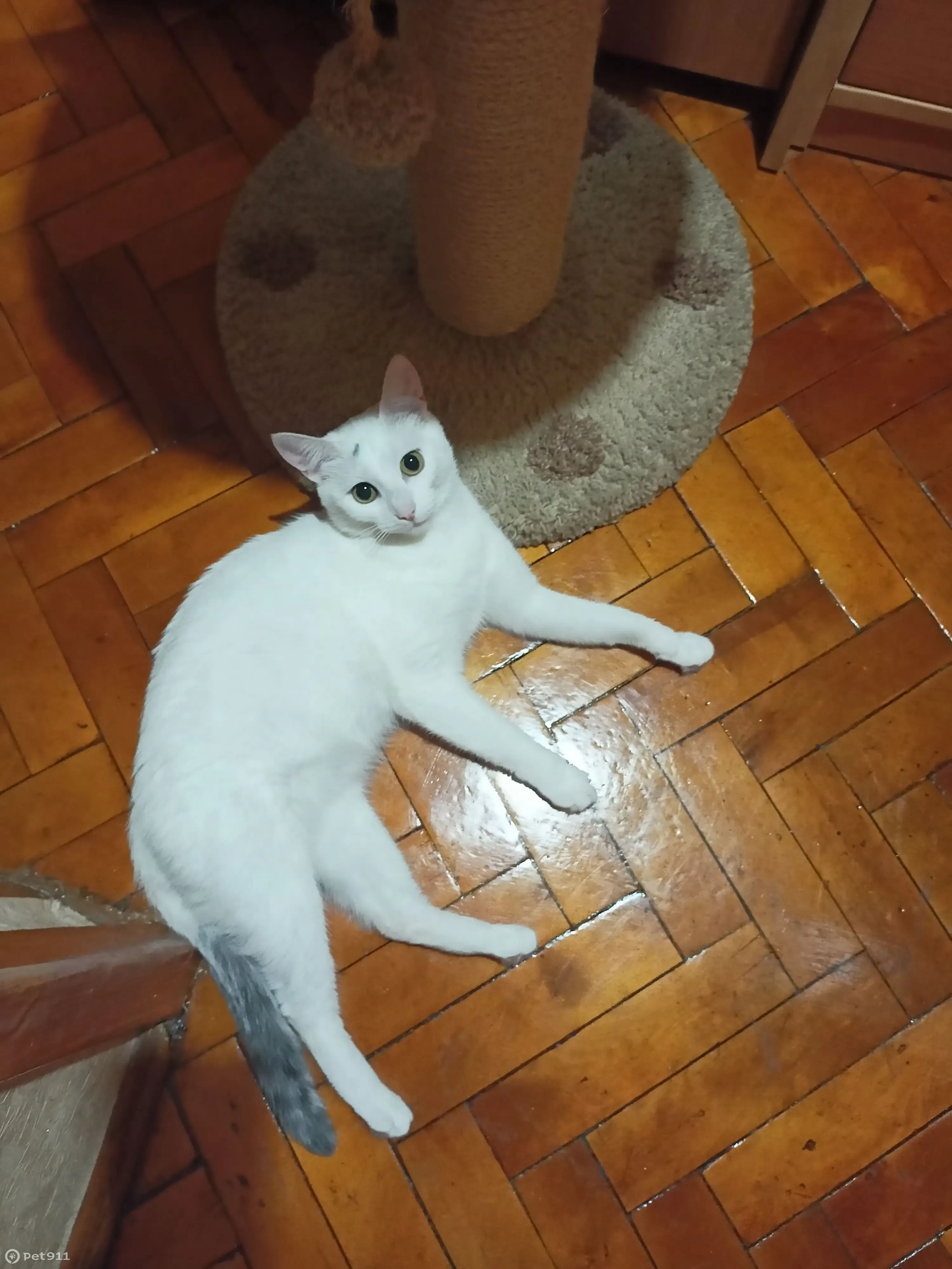 Кошка выпала с сеткой со 2 этажа.Заметили не сразу. Во дворе не было уже. Она белая с серым хостом и попка тожа серая. Кошка очень домашняя,но очень пуглива