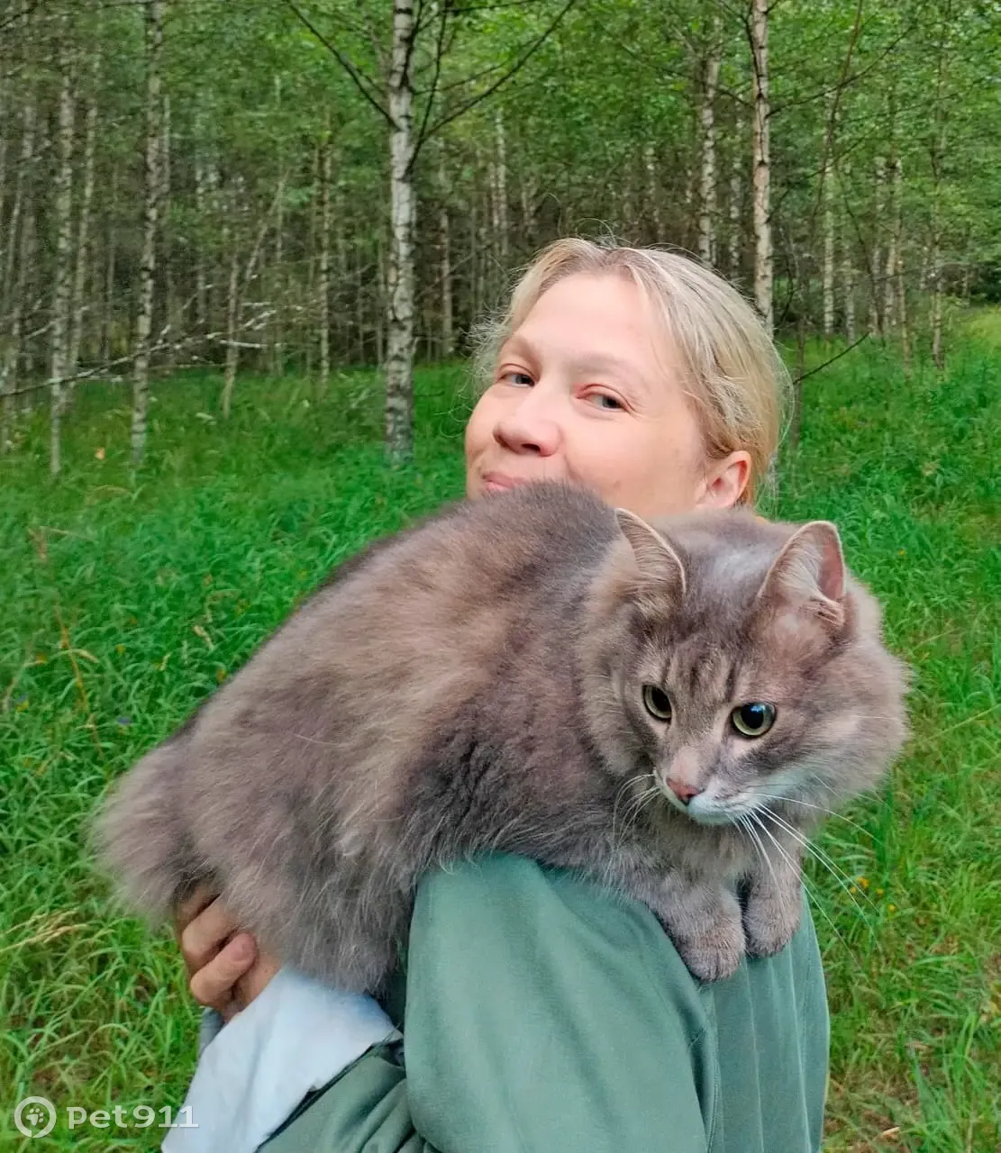 Убежал кот, только въехали в квартиру, 1 этаж, через щель из окна. Домашний, ласковый, социальный, голос тоненький. Коту 4 года, весь серый, похож на сибирского, хвост толщиной 6 см. Пух, откликается на кличку Пуся. Коту необходимо питаться только влажным кормом, иначе он погибнет,таково заключение ветеринара.