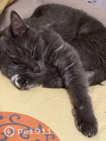 Кошка Тучка, небольшая около 2кг, серого цвета, на грудке и кончиках передних лап белое, прихрамывает на задние лапы, нос с горбинкой