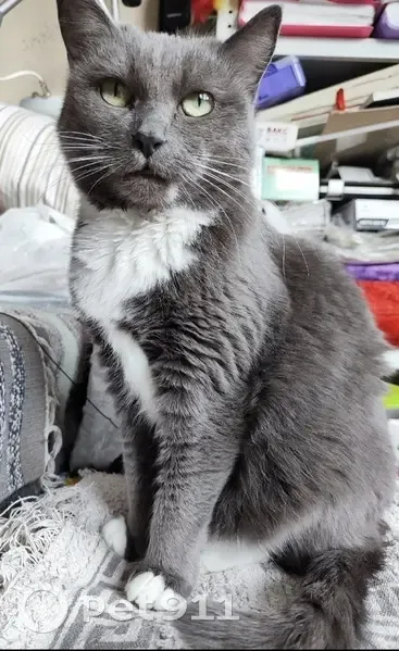 Кошка, 10 лет, окрас темно серый с белыми носочками грудкой и пузиком, домашняя. Похожа на голубую или британскую породу .Кошка пугливая, стрессовая, к чужим не идет,но ласковая. Жила вместе с котом в другом районе Москвы.Попала в этот район на время, т. К. Хозяйка госпитализировалась.