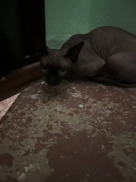 Выбежал кот ( сфинкс) на кличку не реагирует. Очень ласковый и контактный. Подойдёт, если пошуршать пакетиком с кормом. Просьба увидевшим или нашедшим сообщить по телефону: 89150585057