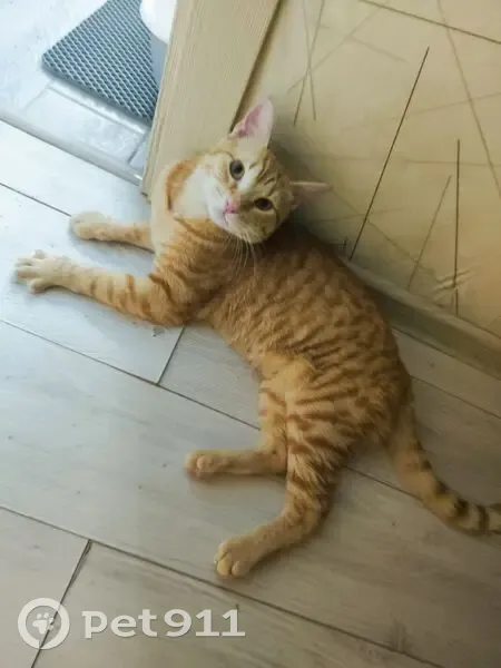 Рыжий кот, подросток, окрас тигровый, выпрыгнул в окно с первого этажа, на улице 13 Парковая, д.35, испугался, убежал, не смогли найти, ласковый и игривый, помогите найти