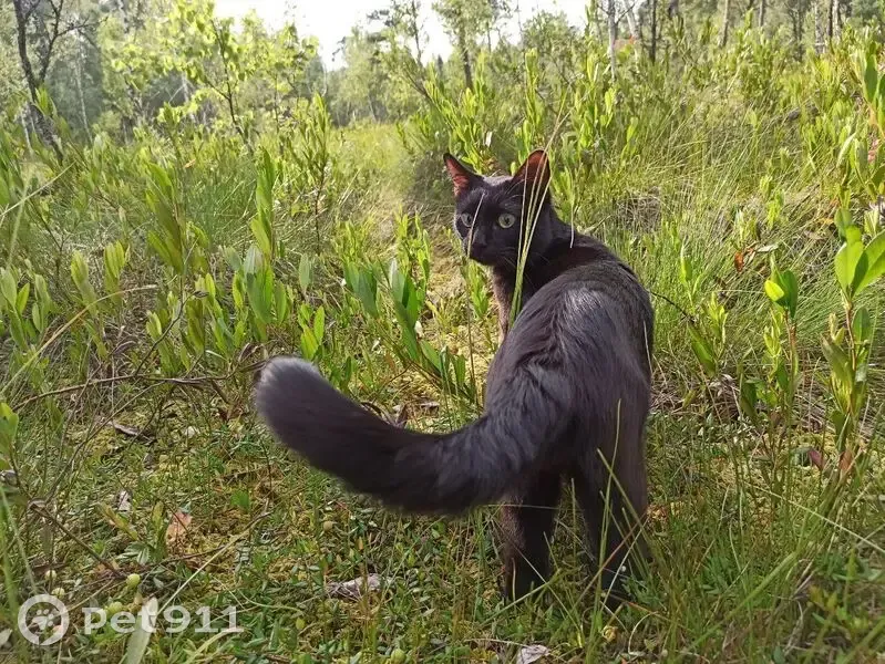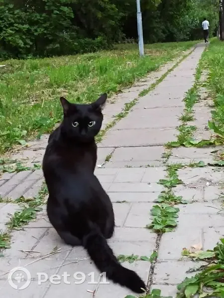 Потерялся кот, 2.5 лет, полностью чёрного окраса, короткошерстный, подшёрсток коричневый, на ляжках и животе шерсть более редкая типа залысин. Не кастрирован. Собак не боится, общительный, хорошо лазит по деревьям. Кот вышел на прогулку и не вернулся