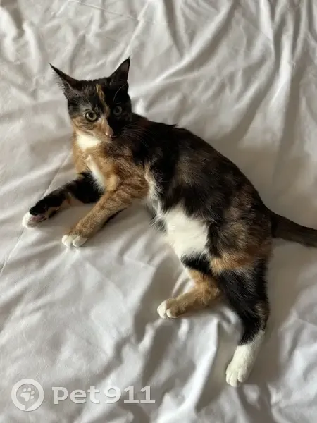 В среду 14.05 в 7-8 утра вышла из квартиры через окно( оно открылось ночью), осталась жива, скорее всего ранена, дворники и ук видели ее на территории после прыжка с утра. Пропажу обнаружили в 10-11 часов. Кличка ПЕПА- откликается, ОЧЕНЬ активная, НЕ КУСАЕТСЯ, НЕ ЦАРАПАЕТСЯ, на улице никогда не была, скорее всего боится. Окрас черный, белый, рыжий. Мордочка половинчатая, есть местами полоски, глаза желтые, хвост тонкий черный. 1 и 7 месяцев. Породы нет. Довольно худенькая. Нашедшего- вознаграждение!