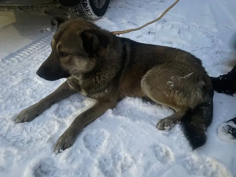 Убежала собака метис испугалась салюта.Светло рыжая спинка чёрная,стерилизованна.Среднего размера,упитанная.На шее ошейник брезентовый.