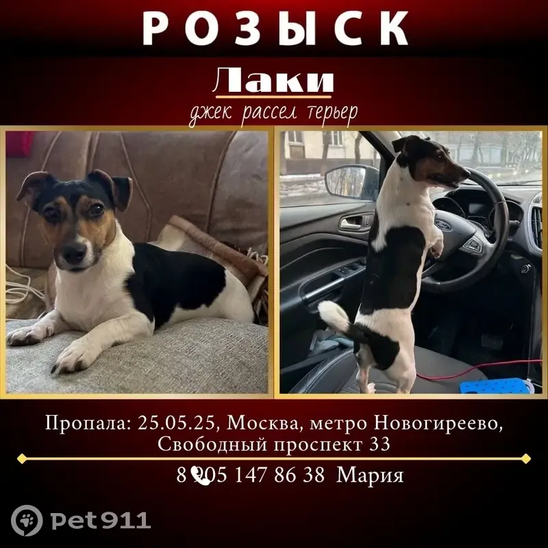 Порода: Джек Рассел Терьер Окрас: черно-белый Была привязана у Сбербанка по адресу Свободный проспект 33 Очень ласковая, доверчивая, добрая. На ней был бордовый кожаный ошейник и черный кожаный поводок