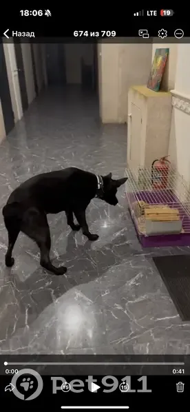 Пропала собака, девочка по кличке Эра, черная, высокая, ухоженная, ласковая. Отличительная черта - крючковатый хвост (врожденное), сорвалась с поводка, побежала за другой собакой. Очень любит хозяина.
