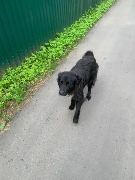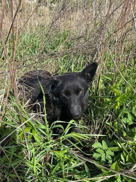 Черная небольшая собака, девочка, в фиолетовой с черным шлейке. Пугливая, к человеку не подойдет. На прогулке сломался карабин, сорвалась с поводка. Не ловите, не зовите, сразу звоните!