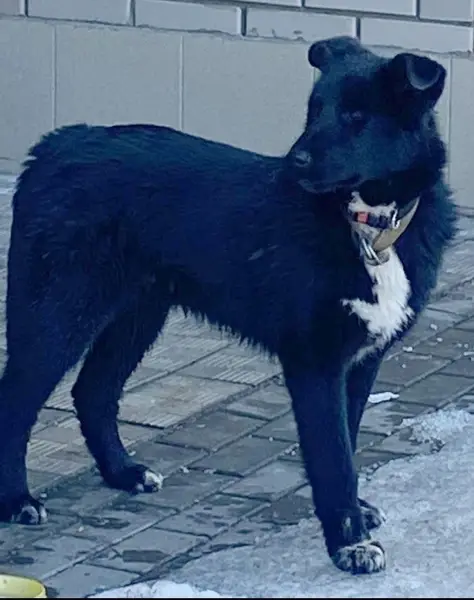 18 февраля, днем, найден молодой (около года) кобель метис. Окрас черный. С кожаным ошейником. вес примерно 20 кг, рост в холке 50-60 см. Зубы белоснежные здоровые. Очень пугливый. на пальцах лап и на груди есть белая шерсть.