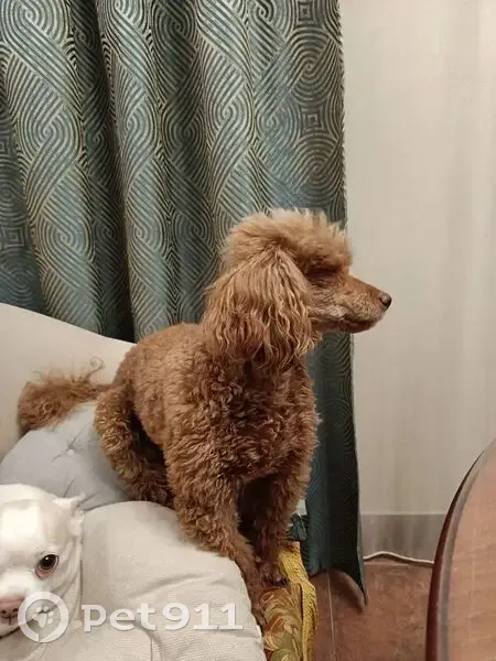 Светло-корисневый той пудель. Не агрессивный. Вечером испугался собаки, которая на него накричала, резко побежал, свалил хозяйку с ног, а та его выпустила из рук. Скорее