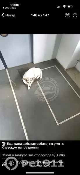 Пропал(а) собака 24.08.25 утром была замечена в электричке на Киевском направлении, в тамбуре 3 вагона электропоезда ЭД4МКу, поезд 6156. Видели как выбежала в Переделкино. Оказалось что собака из Балабаново и ЕЁ ИЩУТ! Пожалуйста, если кто-то живет на Киевском направлении и может узнать у работников станций, или если есть какая-либо информация о ней, свяжитесь: +79105440729 Мария