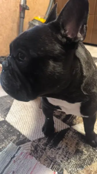 Испугалась мальчиков во дворе и выбежала с территории жк (на Проспекте Мира 102 (в районе между Рижской и Алексеевской) Собака: французский бульдог-девочка. -Черный окрас (с коричневыми полосками), белая грудка, отметина на морде и лапах. -Боится людей и машины, но может подойти к собакам