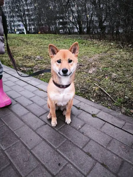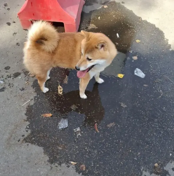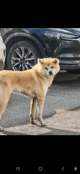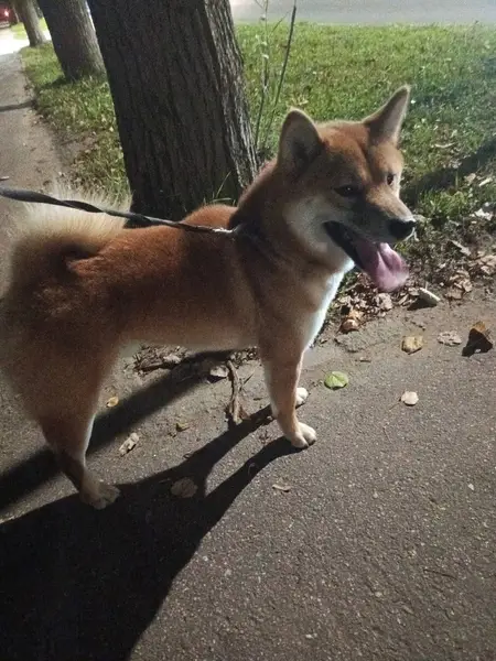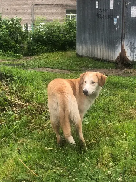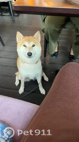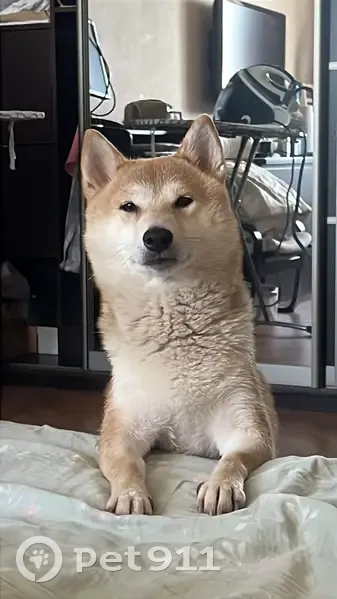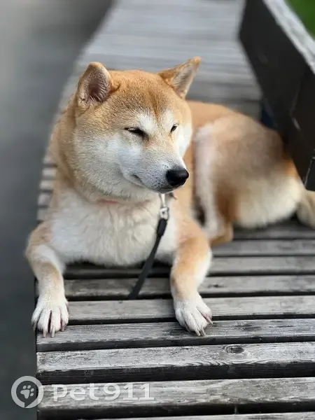 Рыжий светлый окрас, татуировка на пузе XXX3362, ошейник оранжевый с красным адресником