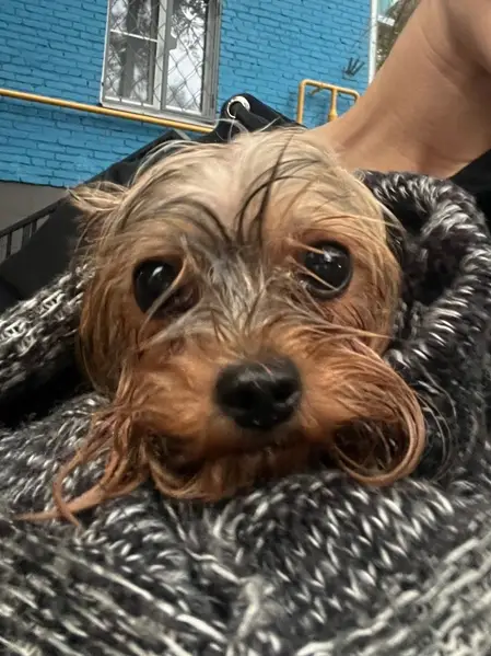 Йорк, 13 лет, девочка, убежала в сторону кошек и пропала из виду. Очень добрая и ласковая, людей и собак не боится, идет на руки ко всем, всем на улице нравится. Была без ошейника. Собака старенькая, язык висит . Кличка Нюша.