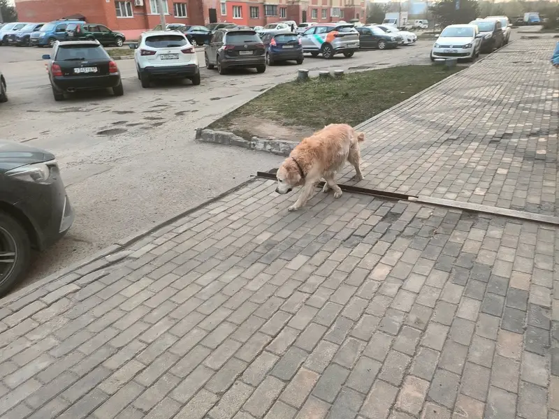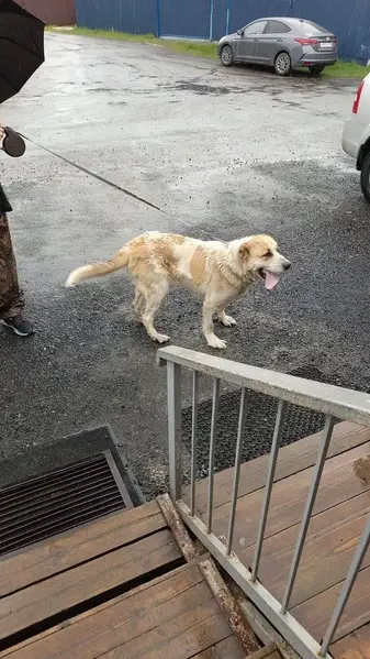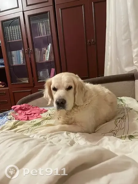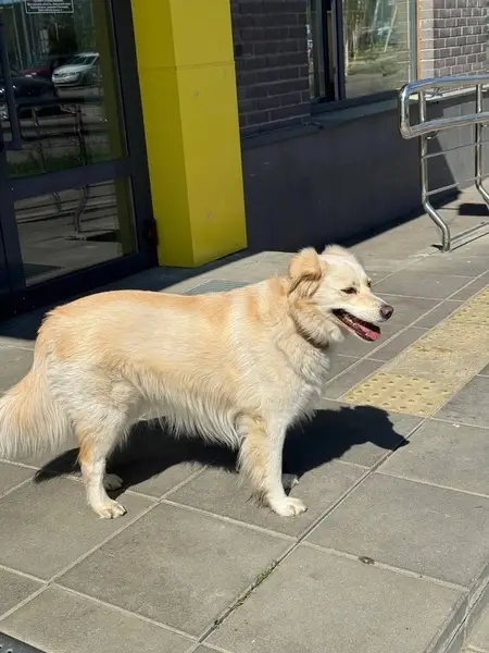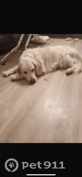 Золотистый Голден Ретривер окрас Светло золотистый белый, потертость светло розовая на носу, на лапе передней правой есть пятнышко потертость не много темнее шерсти девочка Зовут Лиза! Добрая ласковая при радости перебирает передними лапами очень любит бегать за палочкой.
