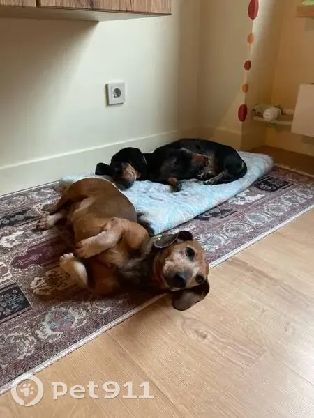 Такса кобель рыжеватого цвета с выраженной сединой на мордочке и передних лапах. Шея местами имеет кабаний окрас. В чёрной шлейке. Чипирован. Пропал/ убежал в районе 16ч в ЖК Шереметьевский во время выгула.