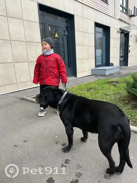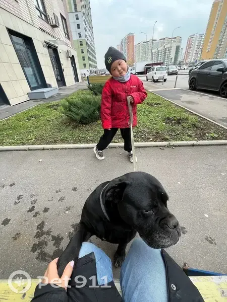 Порода Кана корса, окрас черный, ошейник темно синий, не агрессивная, добрая, к людям и другим животным очень дружелюбная. Живем в частном доме, вылезла под забором В 18.05 - время знаем точно посмотрели по камерам, в 18.40 Сеню видели Льва Яшина 5 возле Хинкальной, в 20.45 на Вертолечиков 1. В 21.35 видели на Проспекте Защитников Москвы бежала от 9 дома в сторону 1 дома. Сеня очень добрая абсолютно не агрессивная, кто увидит пожалуйста придержите. Телефон - 89854188995.